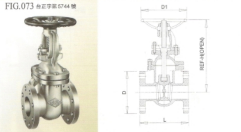 鉋金銅昇桿式閘門閥 125S/300W.O.G